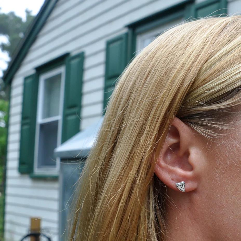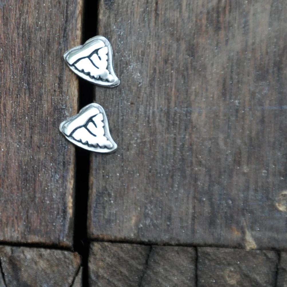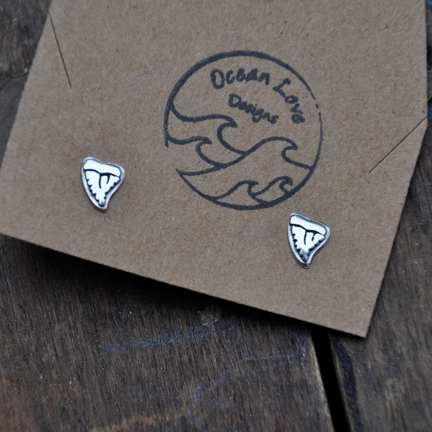 Small but detailed shark tooth studs in *Argentium Silver with sterling silver backings are handmade in Wellfleet, MA. Tooth measures 1/4 inch from top to bottom.