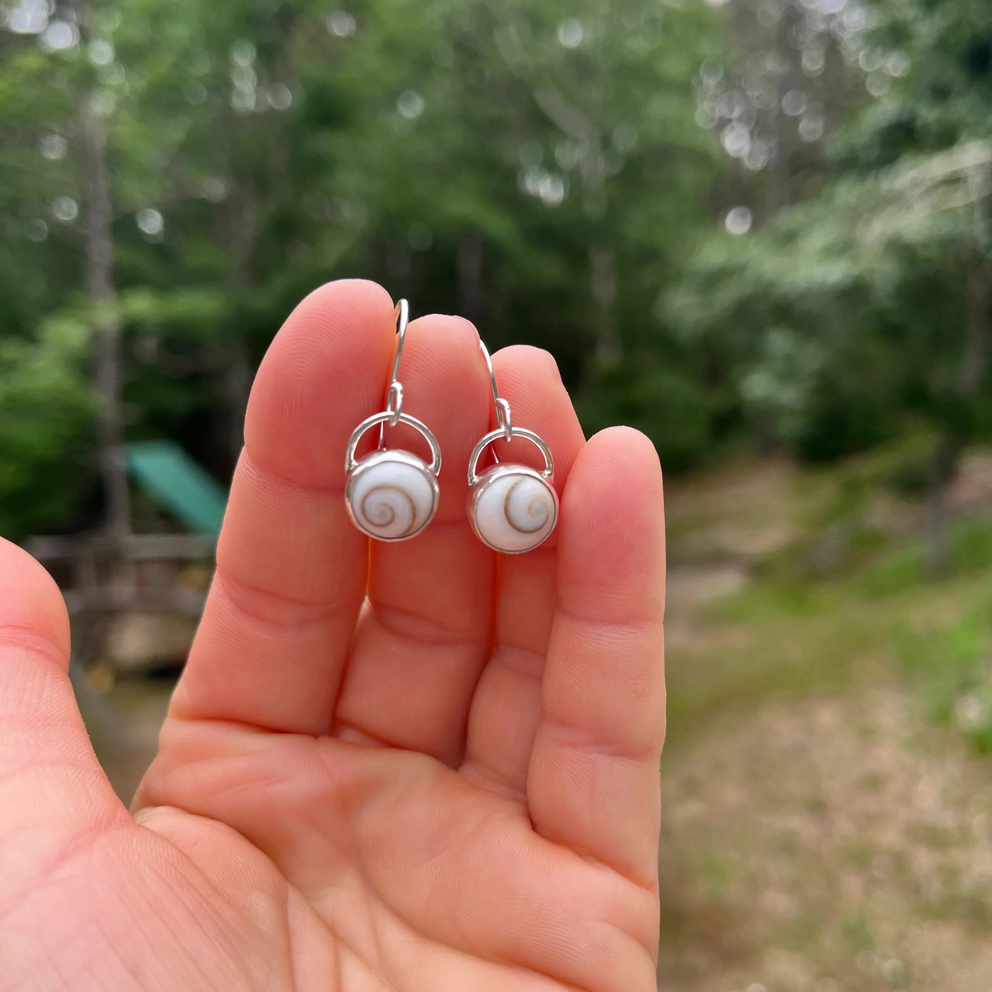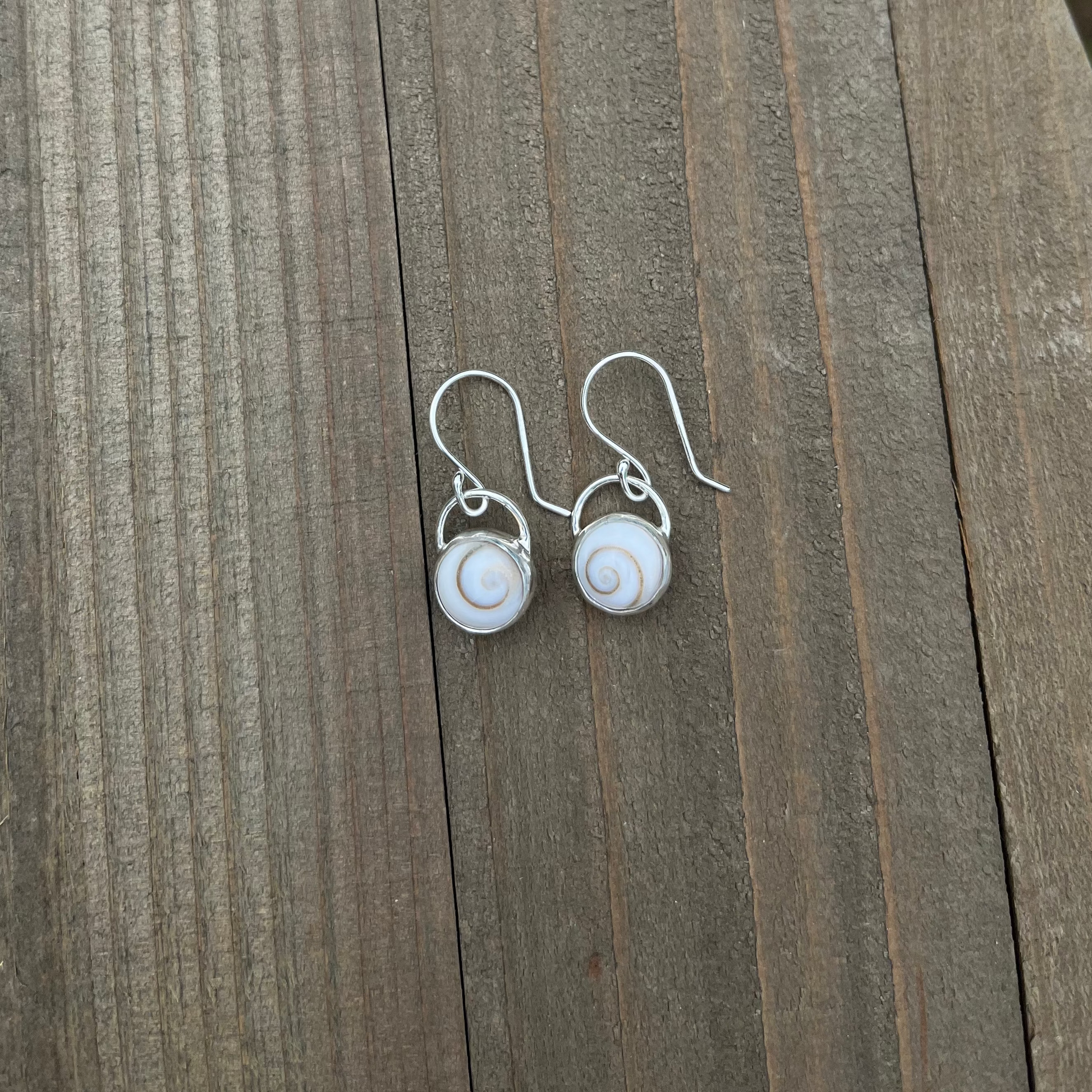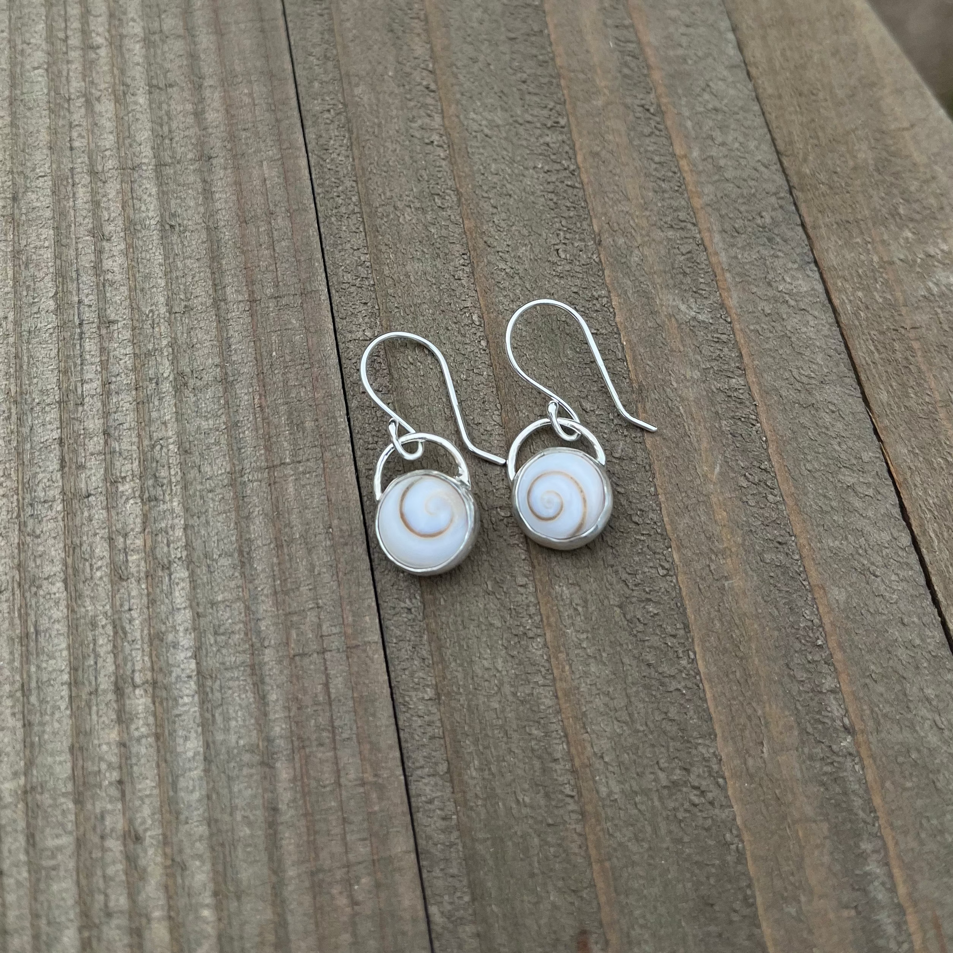 A simple dangle earring perfect for daily wear made with 10mm shiva shells and set in sterling silver with nickel free silver ear wires. Handmade in Wellfleet, MA by Danielle Benton. These earrings are ready to ship!