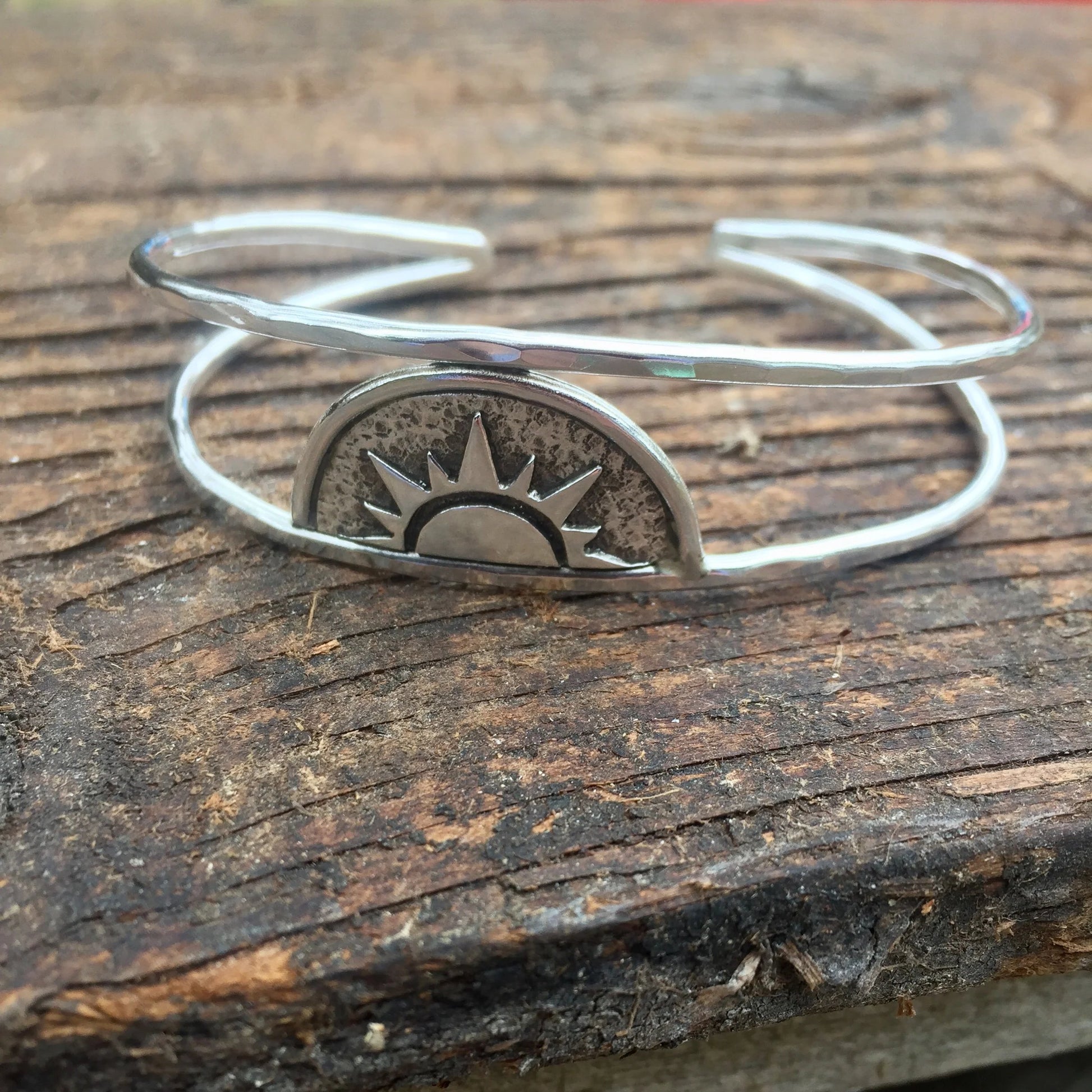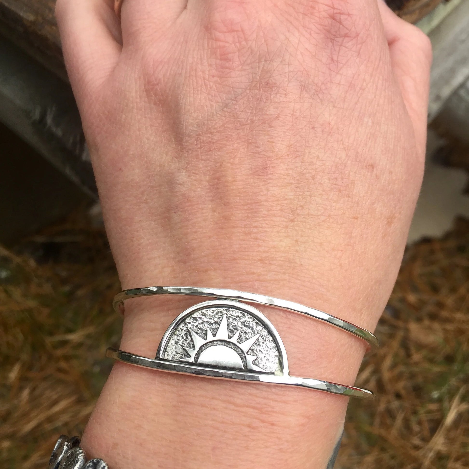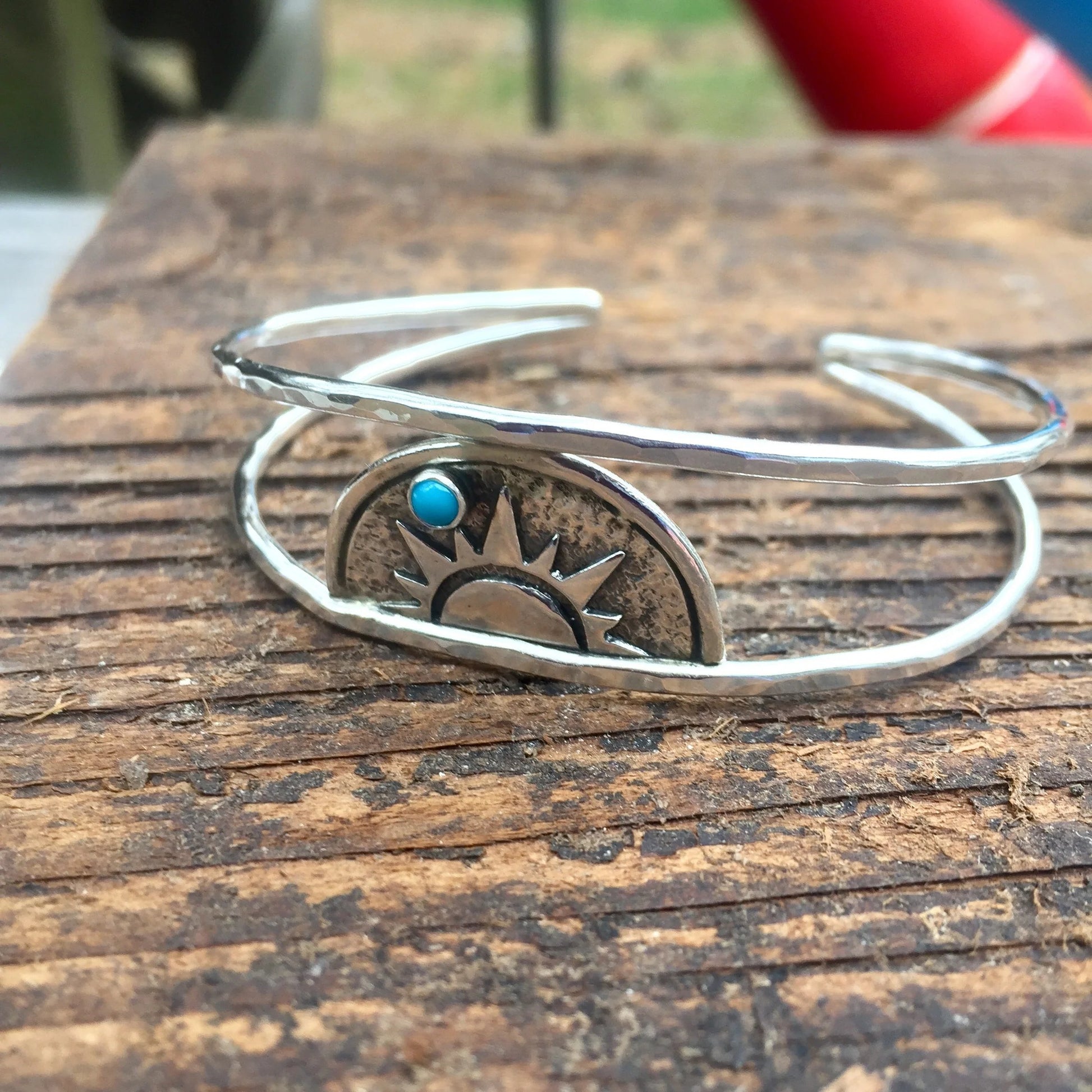 The Sunrise XL collection is my favorite series. Based off of the original sunrise series, the XL version has a bolder style! The bracelet is handmade in *Argentium silver and you can chose the option to add a 3mm turquoise, lapis lazuli or moonstone cabochon. Handmade in Wellfleet, MA.