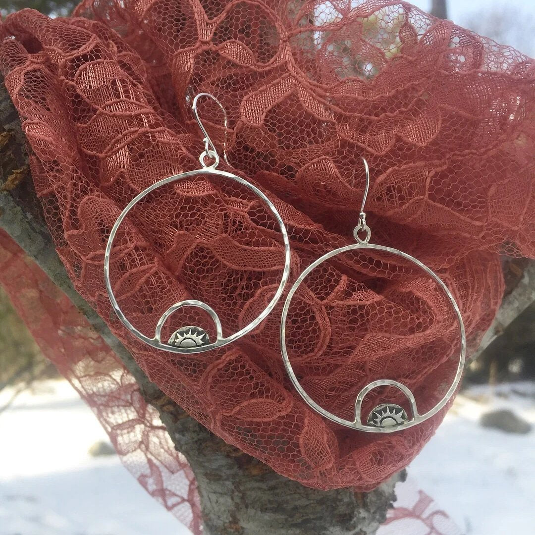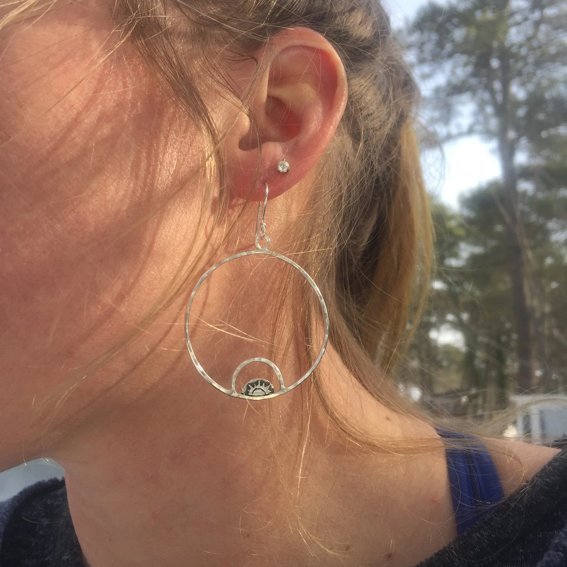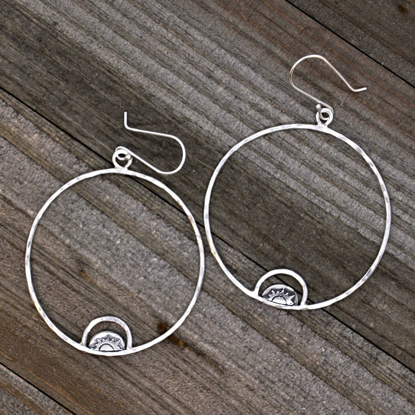 The Sunrise collection celebrates the rise of the sun each day. The two inch hoops are made from *Argentium silver and Handmade in Wellfleet, MA.
