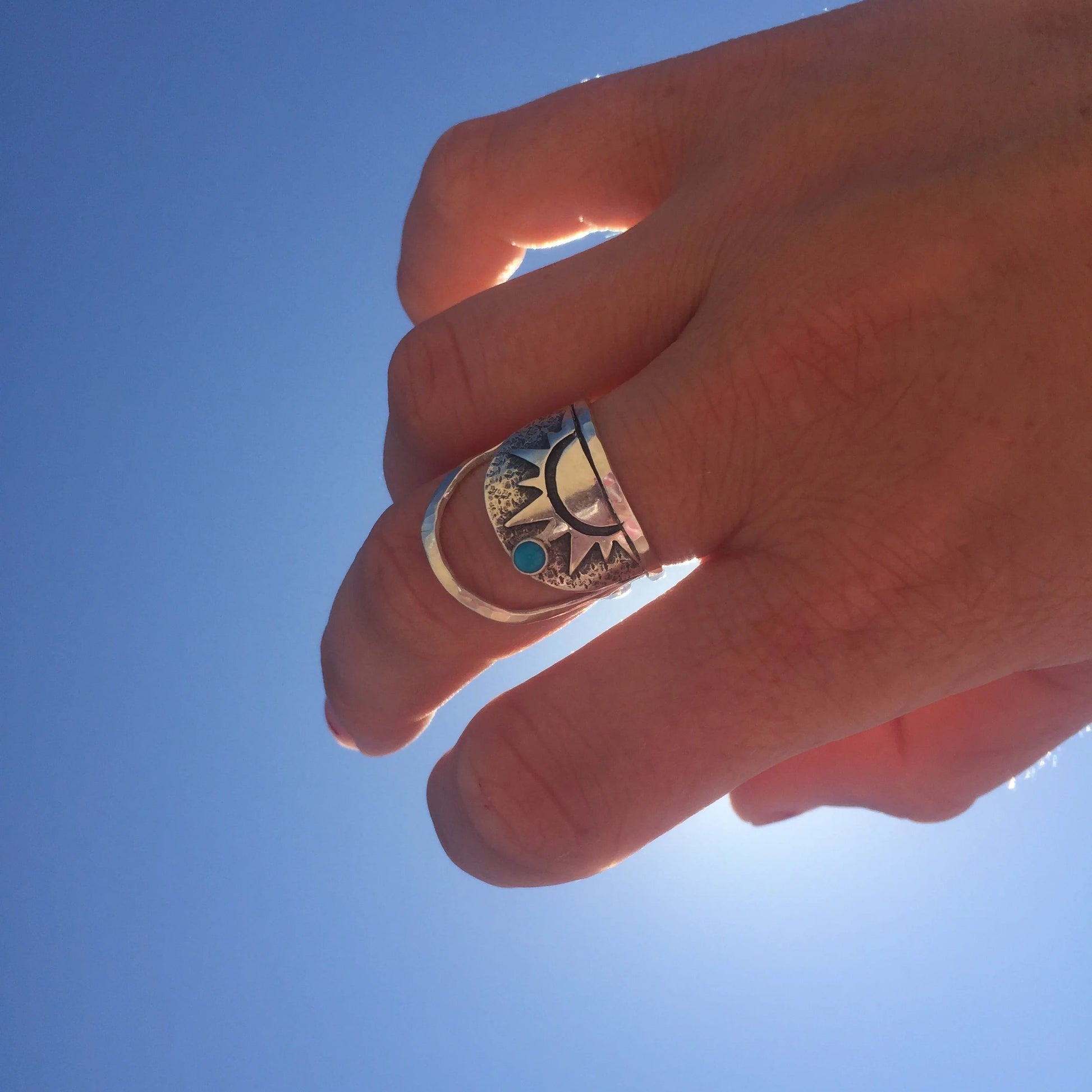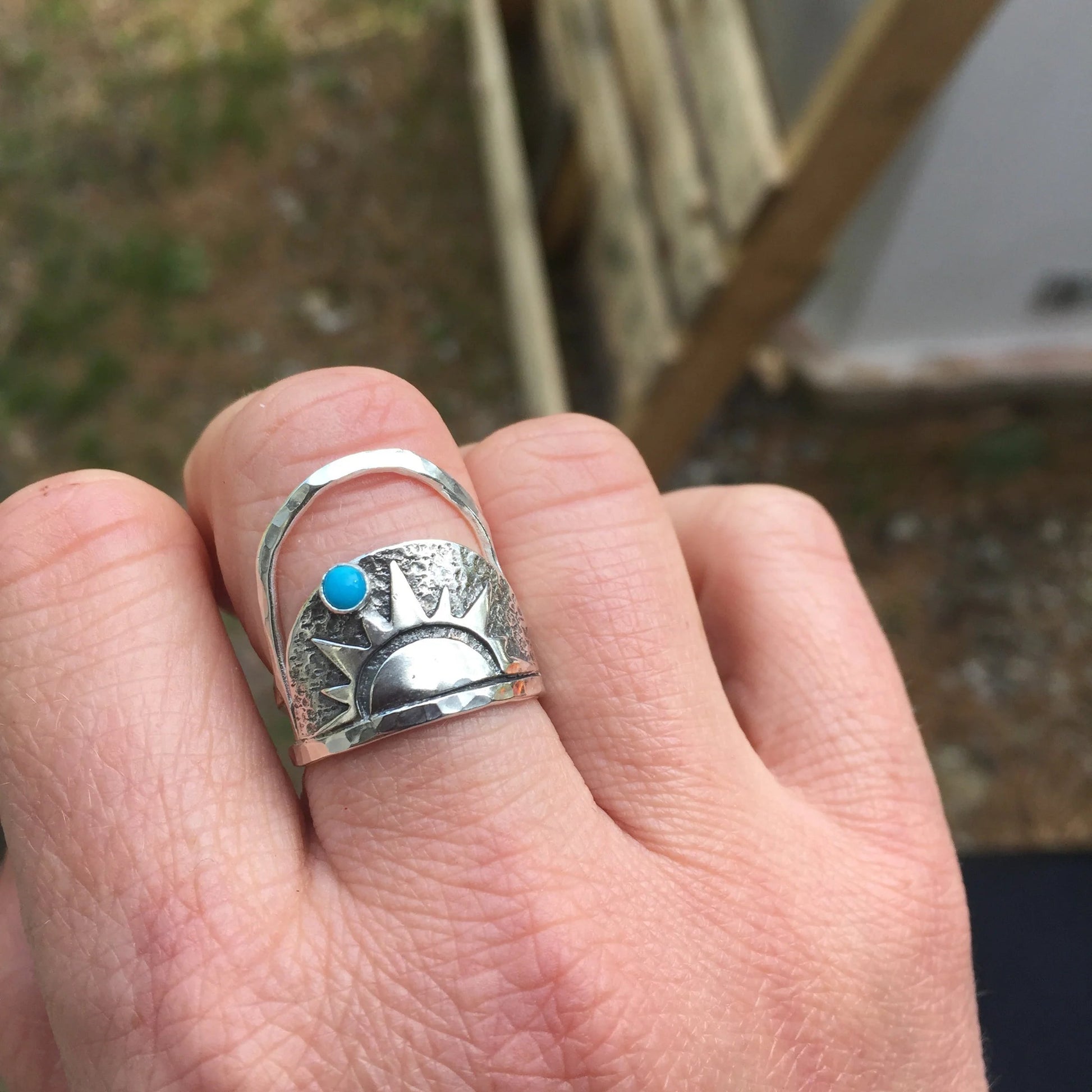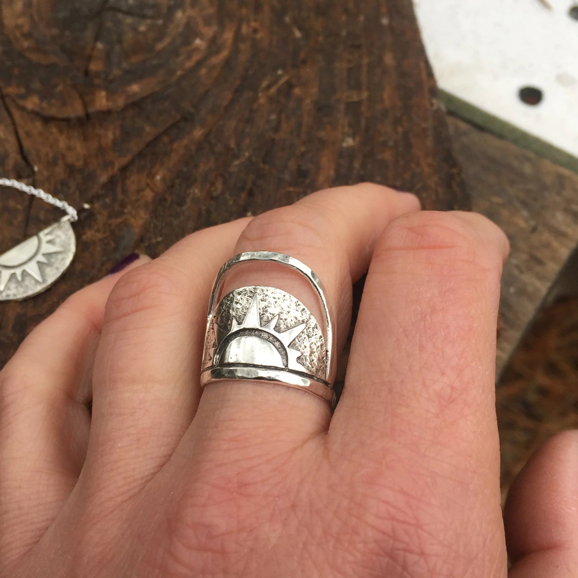 Based off of the original sunrise series, the XL version has a bolder style! Rings are handmade in sterling silver and available in full and half sizes. Handmade in Wellfleet, MA.