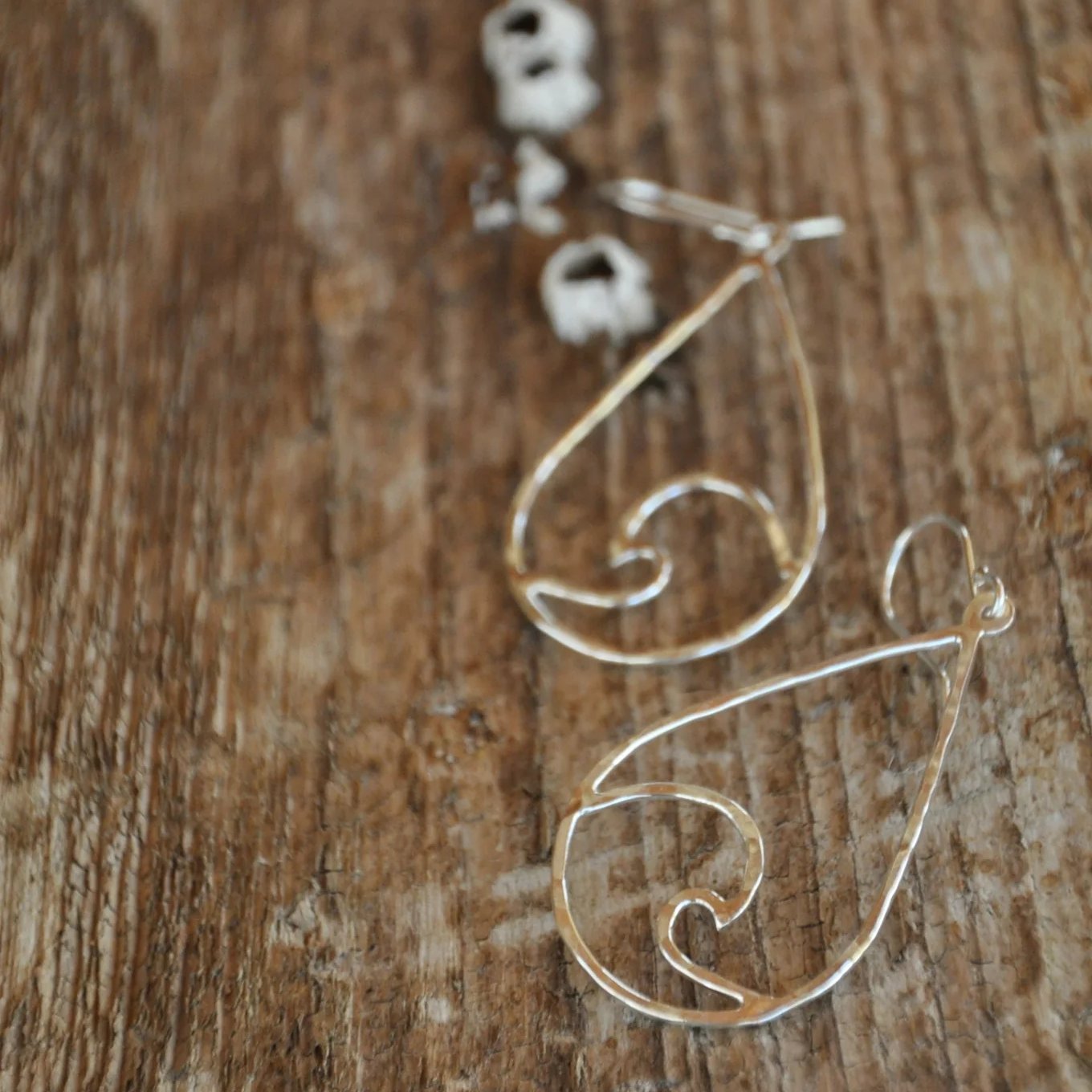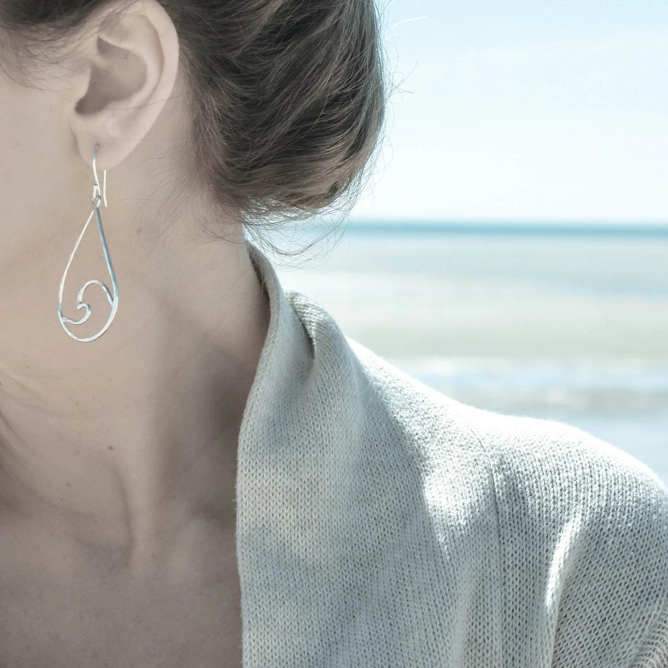 These simple design earrings can be worn as the perfect accent to any outfit whether casual or dressy! *Argentium silver wave earrings are handmade and are about 2 inches in length. These are one of Ocean Love Designs signature items!