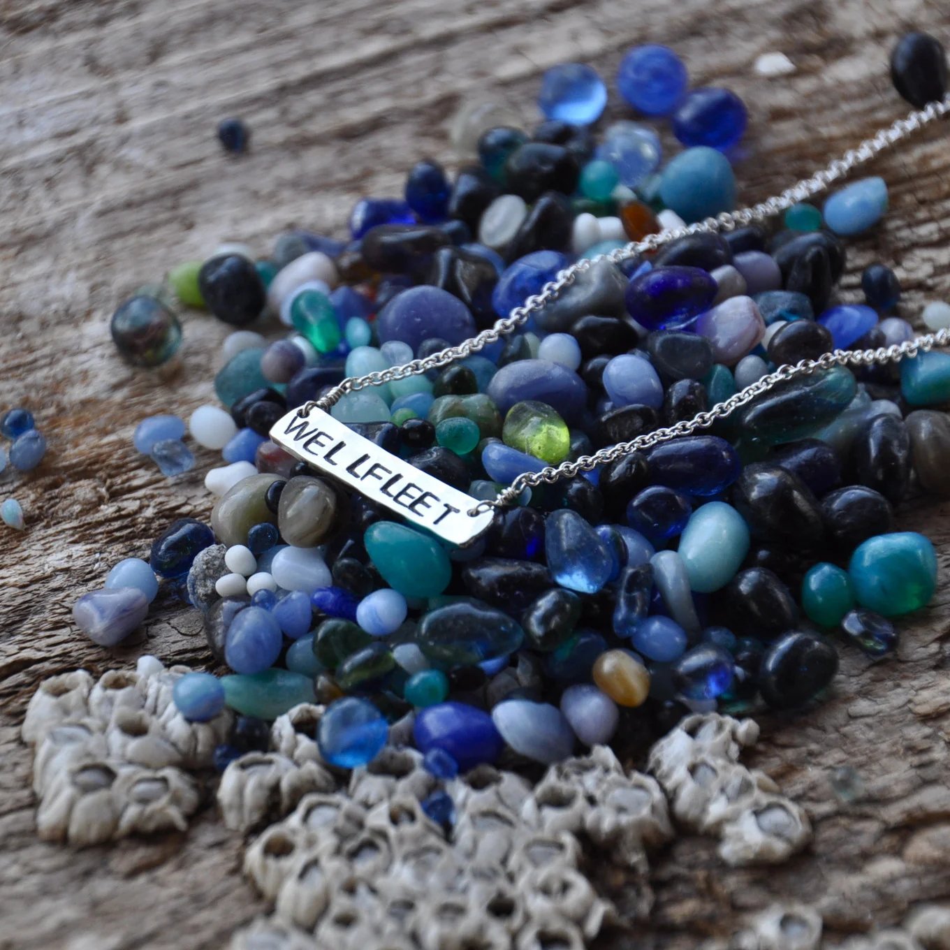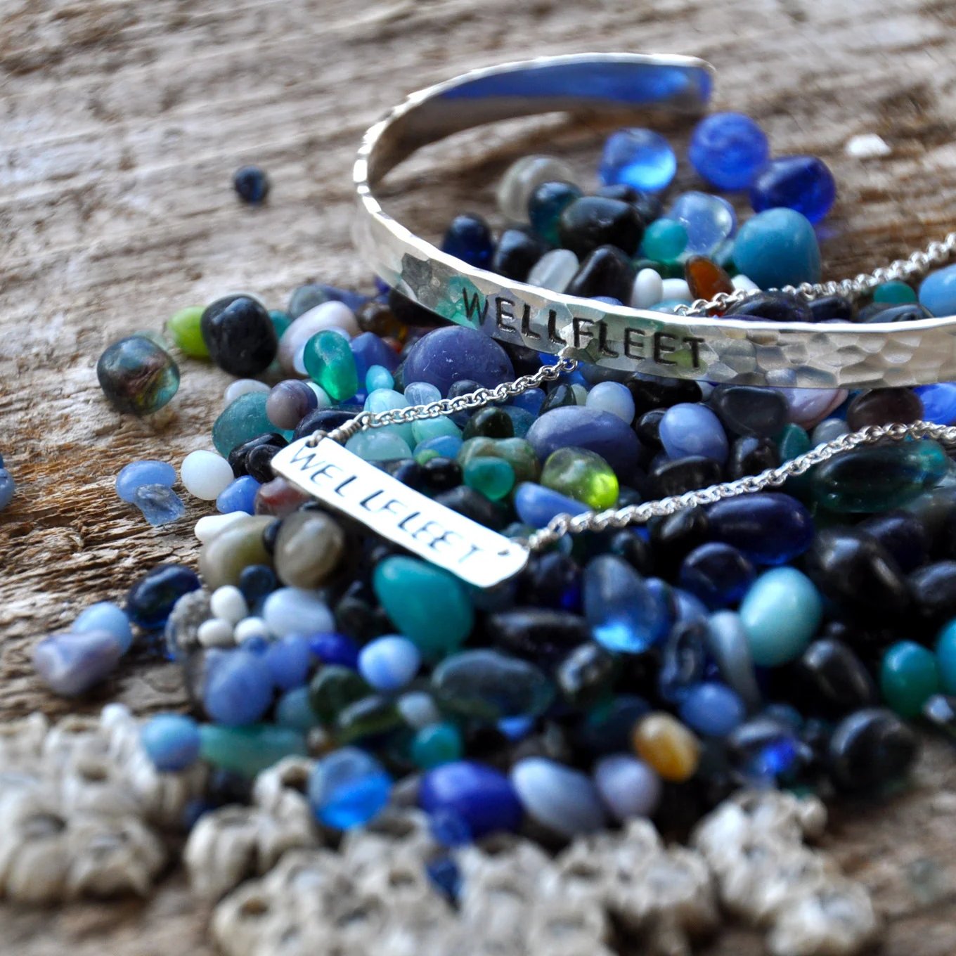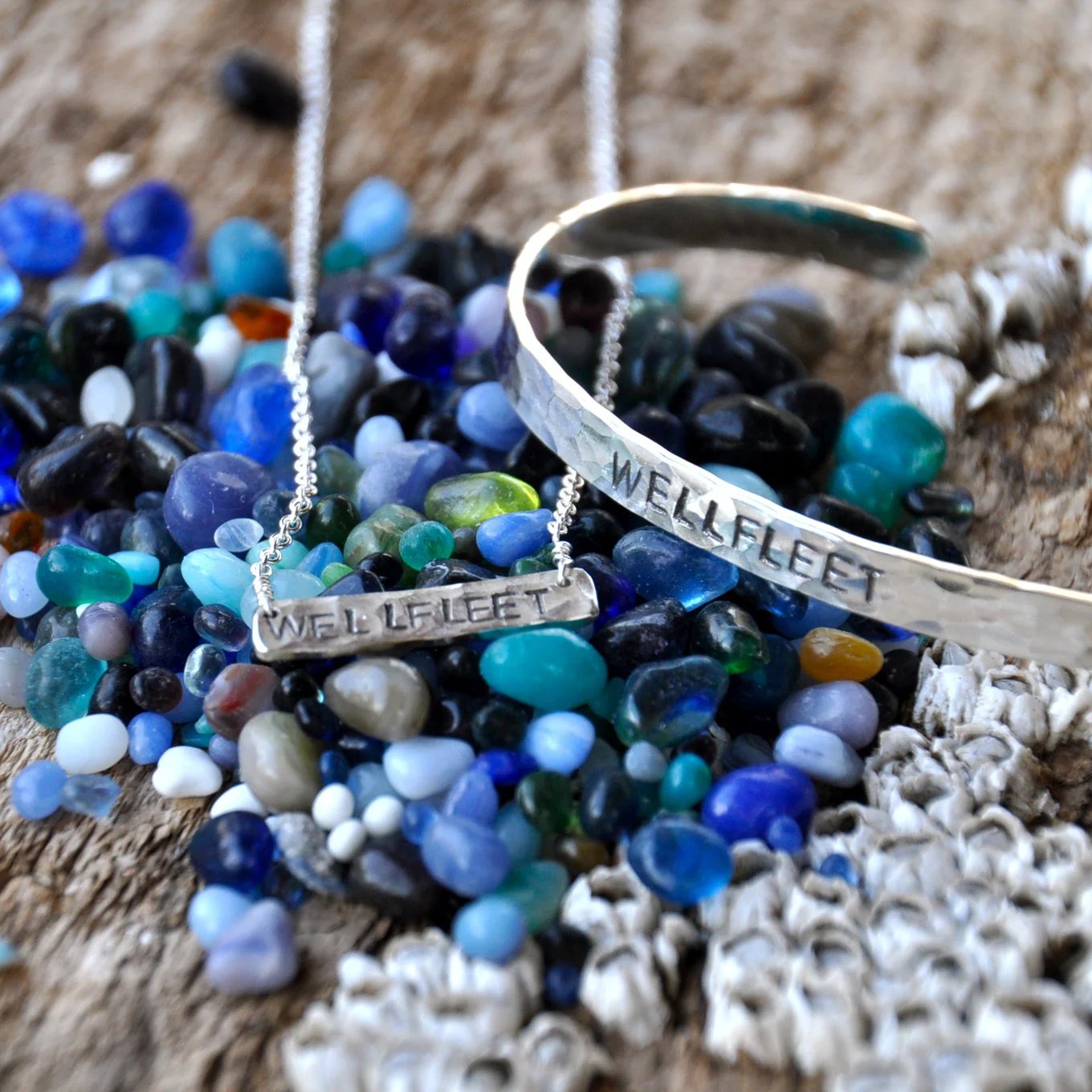 If you find Wellfleet to be as special of a place as I do, then this necklace is just the thing to show it off! Necklace is made from sterling silver, hand stamped and hammered and measures 1.25" in length by 1.25mm. Available on a 16" or 18" sterling silver chain. Handmade in Wellfleet, MA.